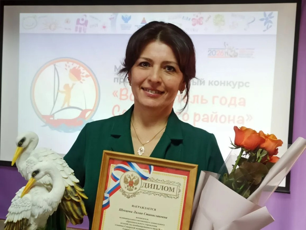 3 апреля прошла церемония закрытия, на которой был объявлен победитель. Им стала воспитатель ДОО № 4 ст. Северской Шевцова Лилия Станиславовна. Л.С.Шевцова работает в детском саду № 4 ст. Северской воспитателем 8 лет, до этого жила и работала в Узбекистане. Является членом волонтерской группы «Я – доброволец» с 2023 года, принимает активное участие в оказании помощи СВО. Увлекается кулинарией и цветоводством. Педагогическое кредо – «Быть творцом и другом детей». Нравится работать в детском саду, потому что это мир детства, новых открытий и потому что каждый день неповторим. Ей близки такие профессиональные качества, как любовь к детям, уважение к личности каждого ребёнка, ответственность. Основная миссия воспитателя, по её мнению, – помочь ребёнку прожить счастливое детство и развить личность.