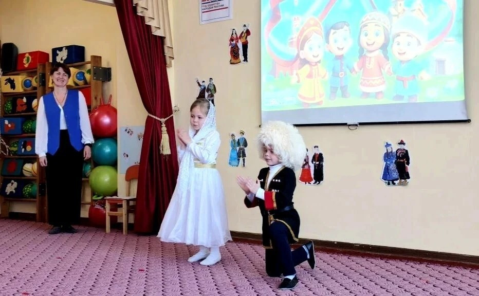 В заключительной части дети подготовительной группы представили гостям «Фестиваль Дружбы Народов», где песни и танцы разных национальностей стали символом единства и уважения.